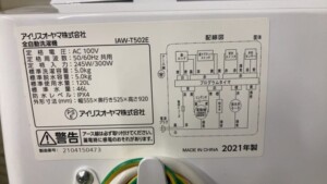 大阪府和泉市でアイリスオーヤマ洗濯機 IAW-T502E 2021年製を出張買取しました