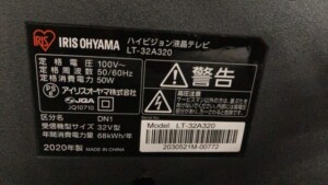 今回は埼玉県比企郡小川町にお住まいの40代男性・会社員より、アイリスオーヤマ 32V型 液晶テレビ LT-32A320(2020年製)を出張買取にてご依頼いただきました。