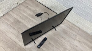 お預かりしたFUNAI FL-32HF160は画面やフレームに目立った傷もなく、全体的にきれいな状態でした。リモコンや電源アダプターも揃っており、動作確認でも問題は見られませんでした。比較的新しい2023年製という点も高評価のポイントです。