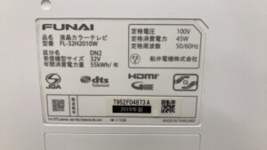 千葉県船橋市にてFUNAI 液晶テレビ FL-32H2010W(2019年製)を出張買取いたしました