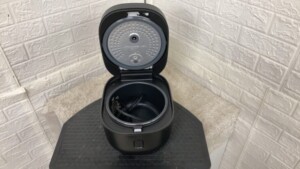 お買取した炊飯ジャーは内釜やフタにやや使用感がある状態でしたが、通電・炊飯ともに動作は正常で大きな破損等は見られませんでした。また使用に伴う細かな汚れもありましたが総合的にはまだ十分にご利用いただけるコンディションと判断しました。