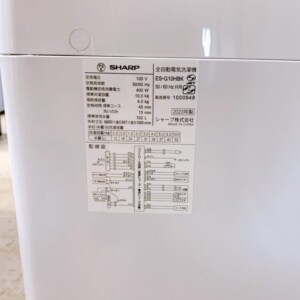 大阪府大阪市にてSHARP全自動洗濯機 ES-G10HBK 2023年製を出張買取しました