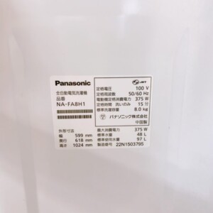 大阪市にてPanasonic全自動洗濯機 NA-FA8H1(2022年製・8.0kg)を出張買取|ファミリー層に人気の容量