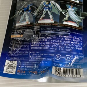 お預かりしたガンダム食玩フィギュアは未開封パッケージでしたが、保管によるパッケージの折れや経年劣化が見られました。中身自体は未使用品と判断できましたが、市場での需要が限られているため単品での査定額は0円となりました。