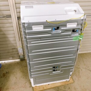 今回お預かりした洗濯乾燥機は、外観に目立つ傷や汚れがなく、庫内も清潔で付属ホースも完備していました。2023年製と年式が非常に新しいモデルで、使用頻度も少なめとのことで大変良好な状態でした。