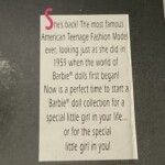 東京都中野区でBarbie 35周年記念ドール(復刻版1959年モデル)を出張買取|箱ありを査定しました