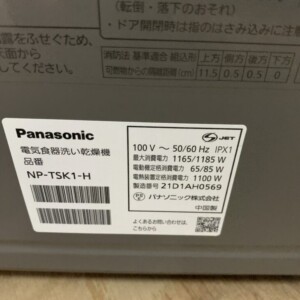 大阪府大阪狭山市で状態良好のPanasonic(パナソニック) 製 電気食器洗い乾燥機 NP-TSK1-Hを出張買取・査定しました