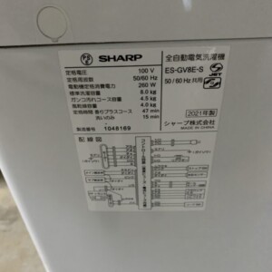今回は杉並区にお住まいの40代男性からSHARP 全自動電気洗濯機 ES-GV8E-S(2021年製)の出張買取をご依頼いただきました。