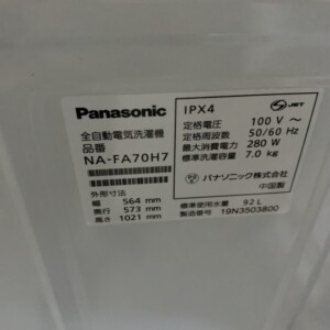 お預かりしたNA-FA70H7(2019年製)は、外観・内部ともに目立ったキズや汚れがなく非常にきれいな状態でした。カビの発生や嫌なニオイもなく、動作確認もすべて問題なく行えました。2019年製ということでしたが、使用感が少なくまだまだ利用できるコンディションでした。