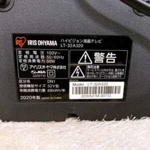アイリスオーヤマのテレビLT-32A320は2020年製モデルで、32型という需要の高いサイズであること、また良好な状態を考慮し2,000円での査定となりました。一般的な中古市場でも一定の需要があり付属リモコンや配線が揃っていることも査定額にプラスとなりました。