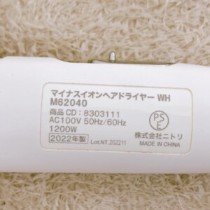 今回は東京都北区にお住まいの30代女性より、マイナスイオンヘアドライヤー M62040(2022年製)を出張買取にてご依頼いただきました。