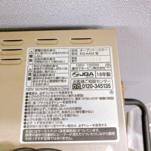 お預かりしたEQ-AA22は庫内に焦げ跡や細かな傷が見受けられる状態でしたが、加熱などの基本機能は問題なく動作していました。外観には使用感がありましたが、主要な機能は正常に使える状態を確認できました。