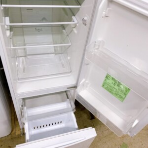 お買取りした冷蔵庫は内部が綺麗に清掃されており、棚やドアポケットも割れや欠損がない良好な状態でした。外観にはごく軽微な擦れがある程度で動作も問題なく冷却機能がしっかりと保たれていました。冷凍室・冷蔵室ともに清潔感があり全体として中古市場でも需要が高い状態と判断しました。