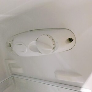 お買取りした冷蔵庫は全体的に綺麗な状態で、庫内には使用に伴う細かな擦り傷があるものの棚やドアポケットも揃っており欠品はありません。動作も正常で冷却機能・冷凍機能ともに問題なく作動していました。