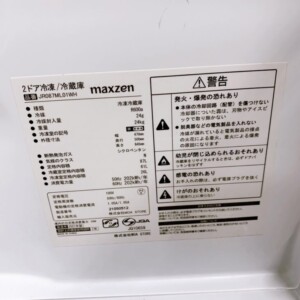 奈良県生駒市でmaxzen 2ドア冷凍冷蔵庫 JR087ML01WHを出張買取いたしました|やや使用感あり