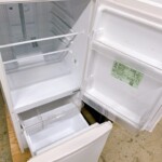 冷蔵庫の外観は比較的綺麗で、ドア面板や取っ手に目立つへこみや大きなキズはありませんでした。庫内については使用に伴う軽い汚れが認められました。ただ冷却機能には問題がなく正常に冷蔵・冷凍ができている状態でした。付属品(冷蔵室仕切り、野菜室トレーなど)は全て揃っていました。