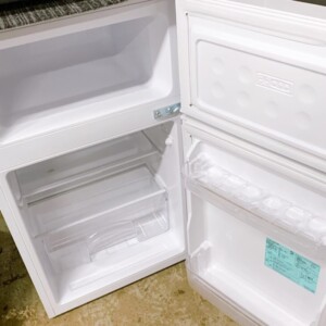 お預かりした冷蔵庫は、全定格内容積85L(冷蔵室60L・冷凍室25L)のコンパクトモデルで、動作確認の結果も冷却機能に問題はありませんでした。外装には小さな擦れはあるものの大きなへこみや汚れはなく、庫内もきれいに清掃されていました。全体的に使用感は少なめでした。