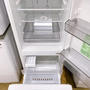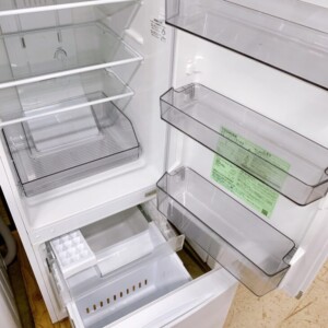 ご依頼いただいた冷蔵庫は、本体外観は全体的に綺麗な状態でした。庫内を確認したところ僅かな汚れが見受けられる程度で冷却などの動作は問題なく良好でした。棚や引き出しなどの付属部品も揃っており実用上支障のない状態でした。