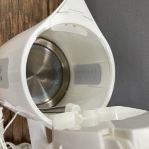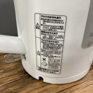 ご依頼いただいた電気ケトルは、全体的にやや使用感がある状態で外装には細かな擦れや汚れが見受けられる一方、内部はスケール(水垢)の付着が多少あるものの通電動作やお湯を沸かす機能には問題はなく日常使用に支障のないコンディションでした。