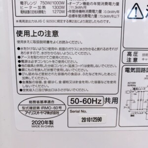 大阪府羽曳野市でアイリスオーヤマ オーブンレンジを出張買取 2020年製・状態良好品を査定しました