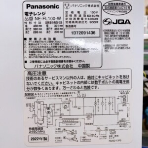 東京都板橋区にてパナソニック電子レンジ NE-FL100-W(2022年製)を出張買取しました