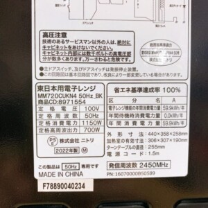 埼玉県川越市でニトリ電子レンジ MM720CUKN4(2022年製)を出張買取いたしました【きれいな状態】