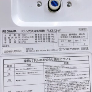 アイリスオーヤマのFLK842-Wは、洗濯8kg/乾燥4kgの大容量モデルで、省エネ性能と静音設計が評価されている人気シリーズです。2022年製で状態も良好だったため、6,000円で買取させていただきました。使用年数の浅さと外観の清潔さが高評価のポイントとなりました。