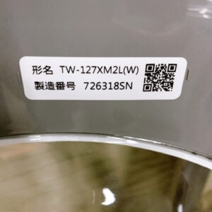 ご依頼いただいたドラム式洗濯機TW-127XM2L(W)は、外装・内部ともに非常に綺麗な状態で庫内のステンレス槽に目立つ傷や汚れはなく、背面パネルにも錆やへこみはありません。付属品として排水ホース・給水ホースも揃っており、動作確認でも異常は見られませんでした。全体的に使用感の少ない良好なコンディションでした。