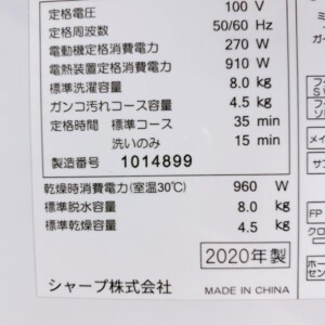山梨県富士吉田市でシャープ 洗濯乾燥機 ES-TX8E(2020年製)を出張買取|使用感の少ない良品を高価査定
