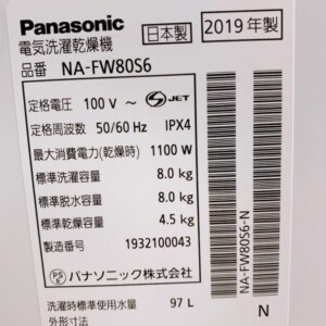 大阪府和泉市でPanasonic全自動洗濯乾燥機 NA-FW80S6を出張買取|2019年製・きれいな状態で高価査定