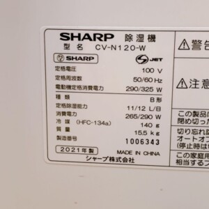 京都府亀岡市でSHARP除湿機 CV-N120-Wを出張買取しました|2021年製・動作良好品
