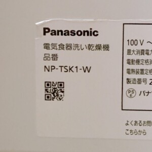 今回は東京都多摩市にお住まいの40代女性・共働き世帯より、Panasonic(パナソニック)食器洗い乾燥機 NP-TSK1-Wを出張買取にてお申し込みいただきました。