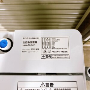 今回は埼玉県羽生市にお住まいの30代女性・主婦の方より、アイリスオーヤマ製 全自動洗濯機 IAW-T804E(2022年製)を出張買取にてご依頼いただきました。