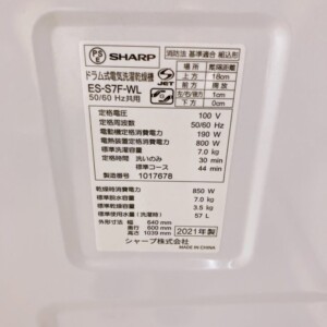 今回は佐賀県鳥栖市にお住まいの30代女性よりシャープ(SHARP)ドラム式電気洗濯乾燥機 ES-S7F-WL(2021年製)を出張買取にてご依頼いただきました。