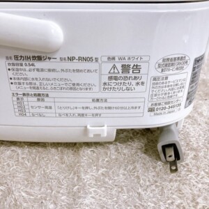 象印(ZOJIRUSHI)製NP-RN05は、小型IHタイプとして人気があり、一人暮らしや少人数家庭からの需要が高いモデルです。清潔感のあるホワイトカラーも中古市場で評価が高く、外観・動作ともに良好な状態であったため、今回の査定額は5,000円とさせていただきました。他社相場(約4,000円)よりも高い買取価格となりました。
