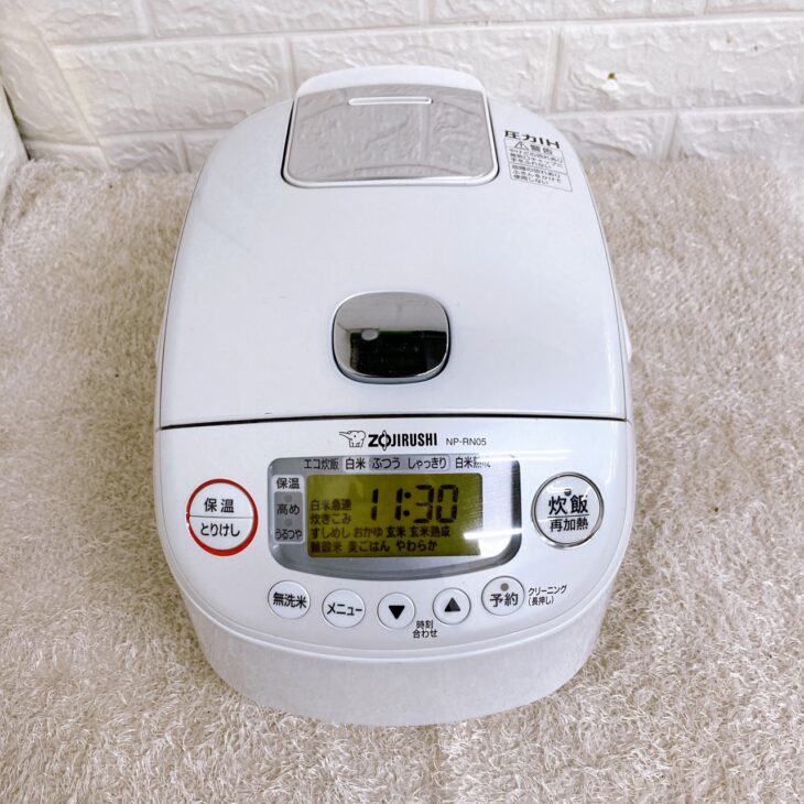 象印(ZOJIRUSHI)製NP-RN05は、小型IHタイプとして人気があり、一人暮らしや少人数家庭からの需要が高いモデルです。清潔感のあるホワイトカラーも中古市場で評価が高く、外観・動作ともに良好な状態であったため、今回の査定額は5,000円とさせていただきました。他社相場(約4,000円)よりも高い買取価格となりました。