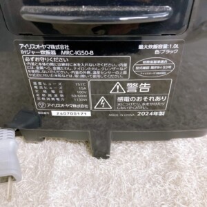 千葉県市原市でアイリスオーヤマ IHジャー炊飯器 MRC-IG50-B(2024年製)を出張買取|美品・動作良好のため高価査定