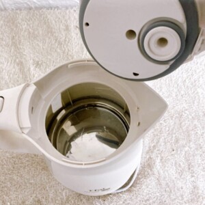 お預かりした電気ケトルは、動作に問題なく使用できる状態で、内部の水垢や焦げ付きもほとんど見られませんでした。外装には若干の使用感があるものの、全体的には清潔感のある良好なコンディションでした。
