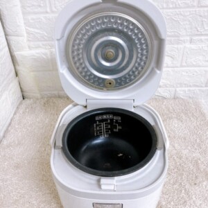 お預かりした炊飯器は全体的に良好なコンディションで、内釜のコーティングも比較的きれいに保たれていました。外装には日常使用に伴うわずかな擦れがある程度で、液晶表示やボタン操作、炊飯・保温機能も問題なく動作。実用的な状態の良品として評価できるお品でした。