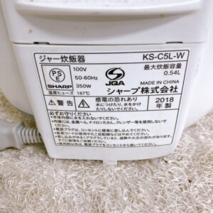 三重県名張市でSHARP炊飯器KS-C5L-Wを出張買取|2018年製でも動作品を高価査定しました