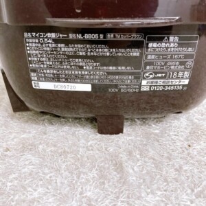 象印のNL-BB05はコンパクトながら高火力仕様で人気のモデルです。2018年製で年数は経過していましたが、状態が良好だったため、330円での買取とさせていただきました。他社相場が査定金額が付かない事が多い中、動作品かつ美品として高めの評価となりました。