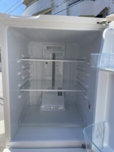 冷蔵庫は、扉部分に黒いスレ汚れや庫内は食品による汚れ、