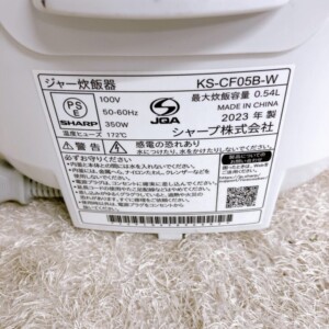 今回は静岡県静岡市にお住まいの20代女性より、SHARP(シャープ)ジャー炊飯器 KS-CF05B-W(2023年製)を出張買取にてご依頼いただきました。