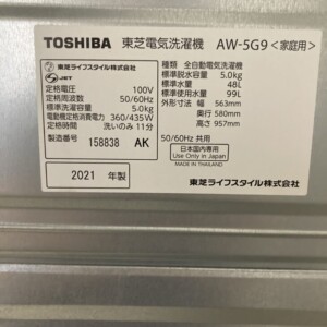 今回は福岡県中間市にお住まいの30代女性から、東芝 全自動洗濯機 AW-5G9(2021年製)を出張買取にてご依頼いただきました。