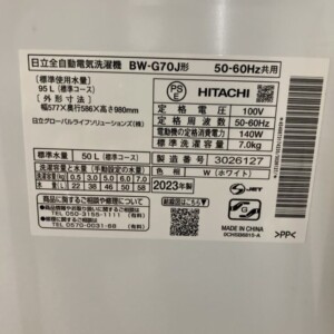 今回は千葉県流山市にお住まいの30代男性より日立 全自動洗濯機 BW-G70J(2023年製)を出張買取にてご依頼いただきました。