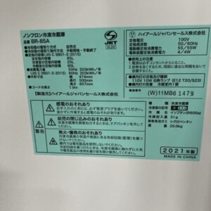 今回は埼玉県草加市にお住まいの30代男性よりハイアール ノンフロン冷凍冷蔵庫 BR-85A(2021年製)を出張買取にてご依頼いただきました。