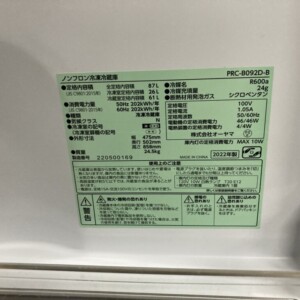 埼玉県嵐山町でアイリスオーヤマ冷蔵庫 PRC-B092D-B を出張買取|2022年製・良好状態で高価査定