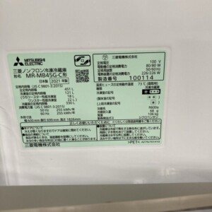 今回は三重県津市にお住まいの50代夫婦世帯・会社員の方より、三菱電機 ノンフロン冷凍冷蔵庫 MR-MB45G-C(2021年製)を出張買取にてご依頼いただきました。