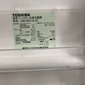 今回は山梨県甲府市にお住まいの40代夫婦世帯・会社員の方より、東芝 ノンフロン冷凍冷蔵庫 GR-M41G(S)(2018年製)を出張買取にてご依頼いただきました。