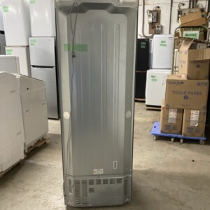 銘板より確認できた主な仕様は、総容量363L(冷蔵279L/冷凍84L)、幅600×奥行676×高さ1734mm、年間消費電力量 約385kWh、R600a冷媒、質量約69kg。間口600mmで設置しやすく、上段冷蔵・中段冷凍・下段野菜室の3ドア構成で日常使いに配慮されたモデルです。